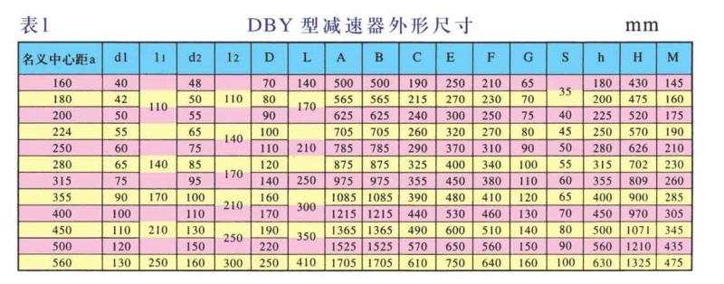 DBY、DBYK、DBZ型減速機各有12種規格,名義中心距為:160,180,200,224,250,280,315,355,400,450,500,560mm每種規格均有5種傳動比(8,10,11.2,12.5,14)兩種旋向,四種裝配型式,分別組成240種減速機。